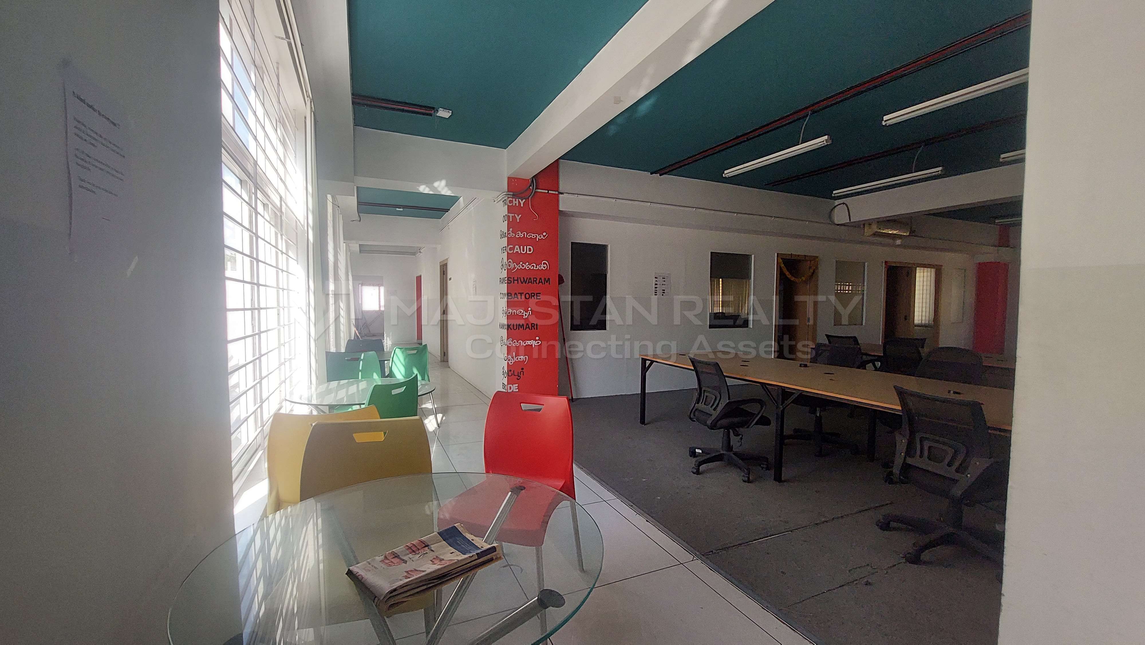 Experience premium workspace convenience with this 6000 sq.ft office space for rent located on Thadagam Main Road, RS Puram, Coimbatore. This north-facing property, situated on a 60FT road, ensures exceptional visibility and accessibility — ideal for corporate offices, startups, consulting firms, or back-end operations.