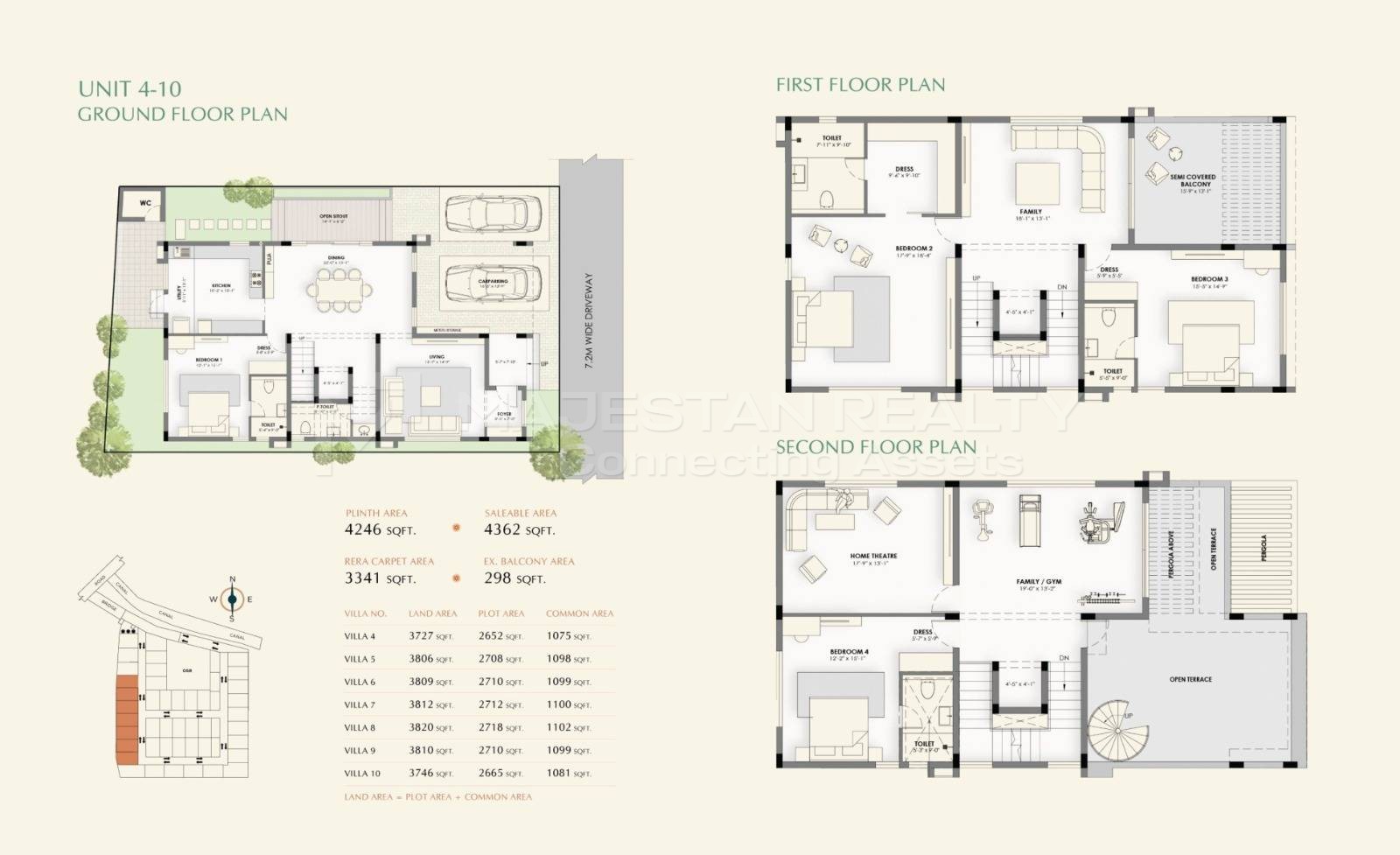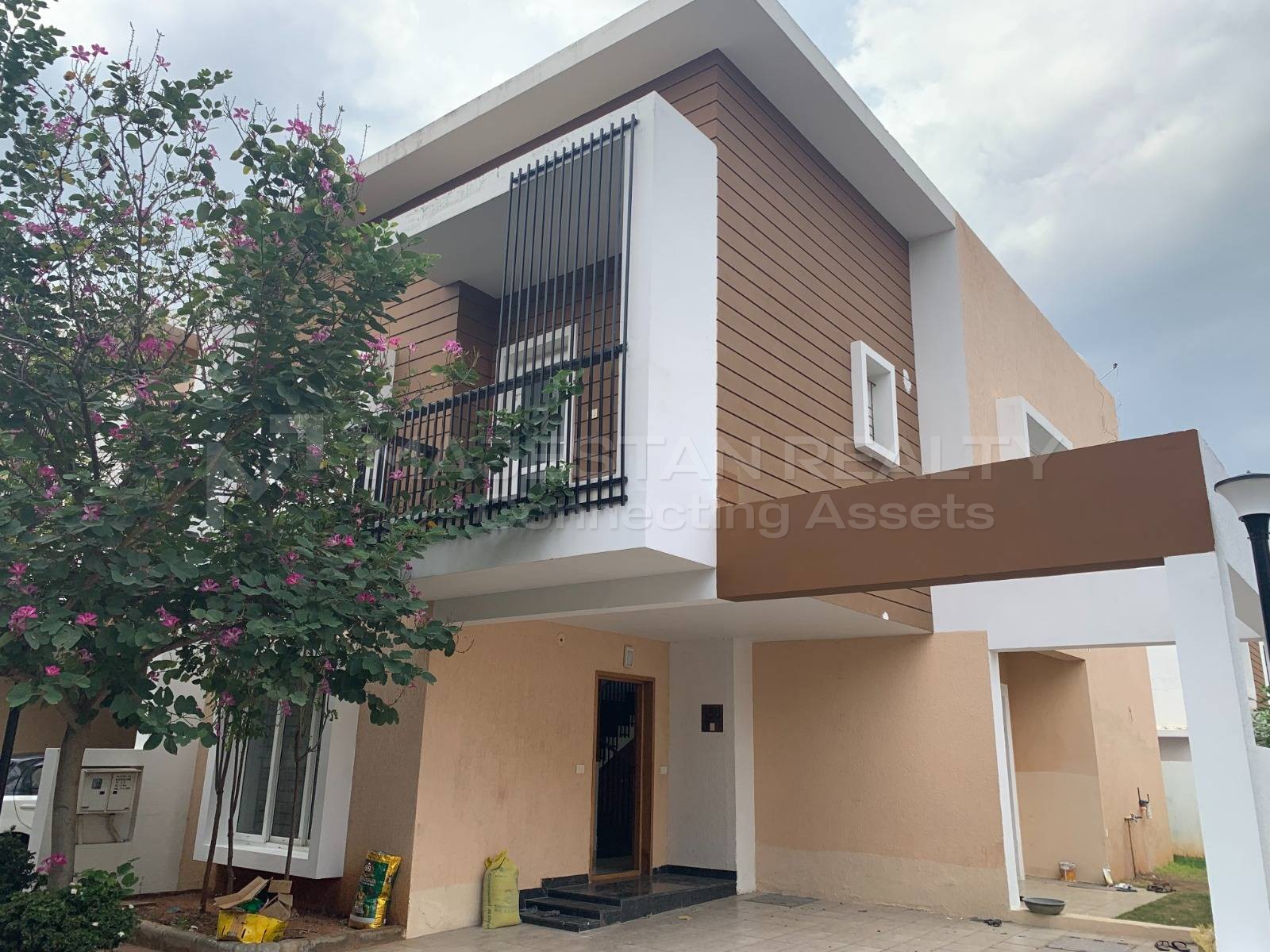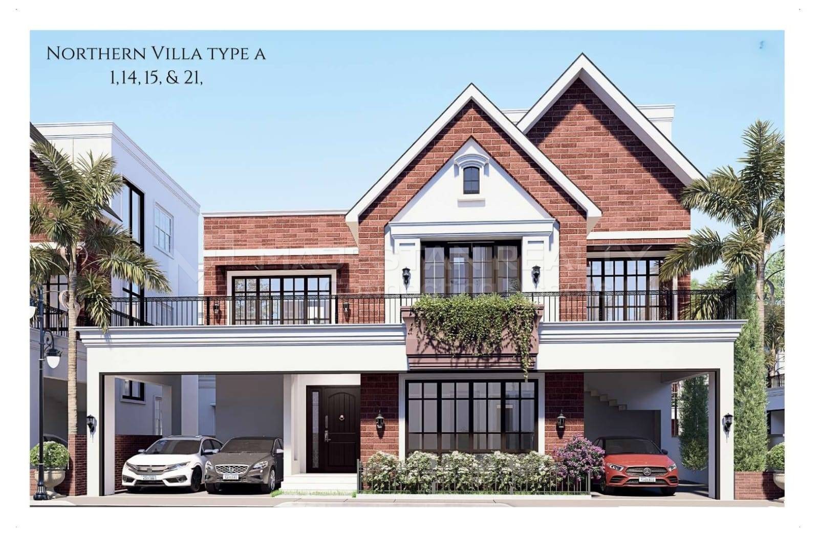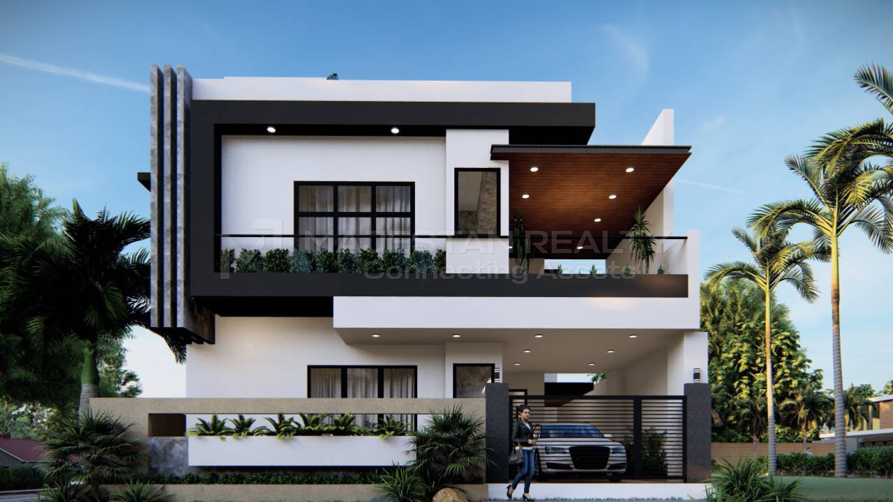 The layout features a well-proportioned living area of 15.7×14.9 ft, a large dining area of 22.0×13.1 ft, and generously sized bedrooms that ensure natural light and ventilation throughout. The villa also includes a wide balcony of 15.9×13.1 ft, creating an airy, open living experience. Designed in a modern architectural style, this property gives homeowners the freedom to design interiors to their personal taste, as it comes in a bare-shell condition.